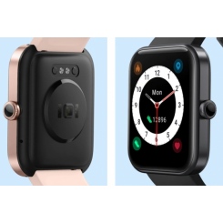 Тип устройства: Смарт-часы. Год выпуска: 2021. Вес: 40 г. Габариты: 42х42х10 мм. Цвет: черный, розовое золото. Влагозащита. Дисплей. Шагомер. Пульсометр. Гироскоп.